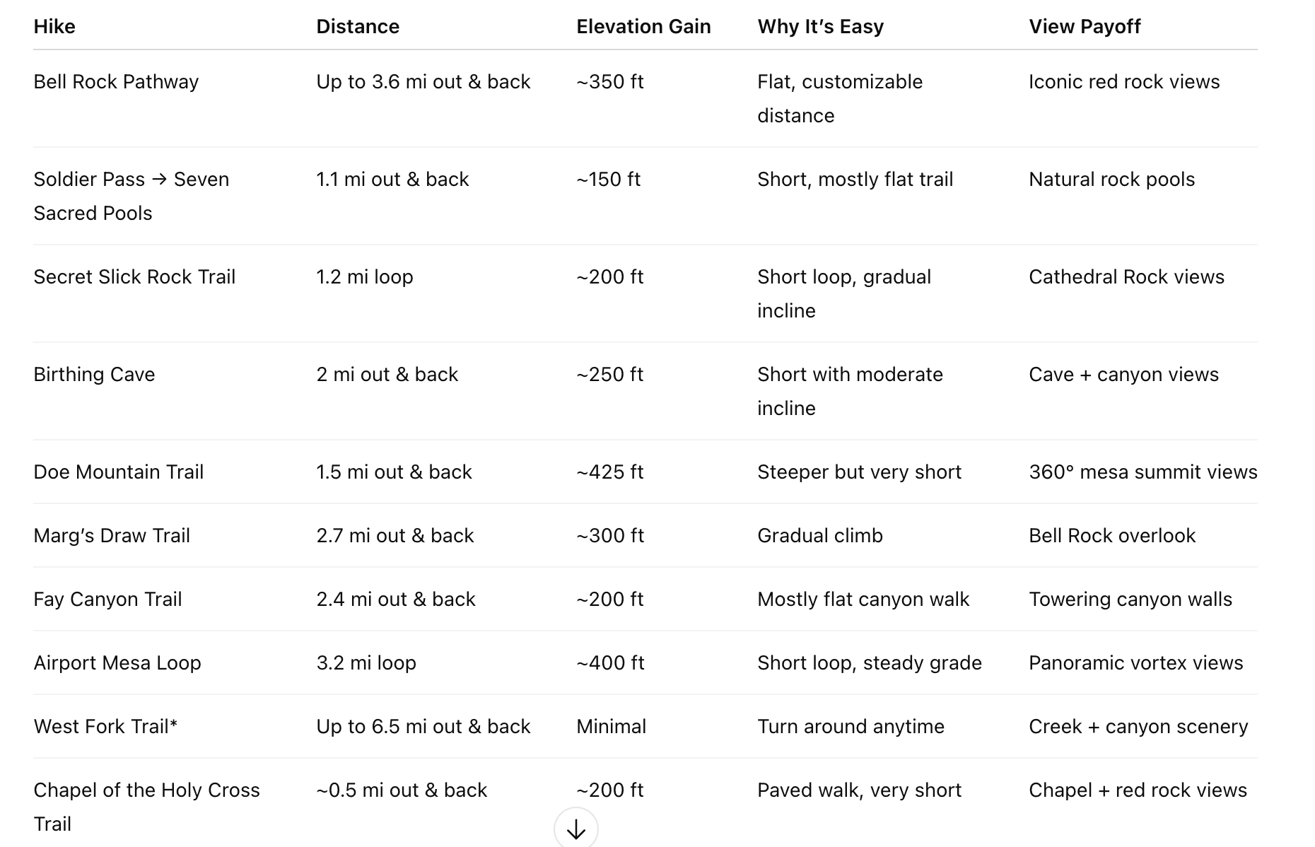 Easy Sedona Hikes: Quick List